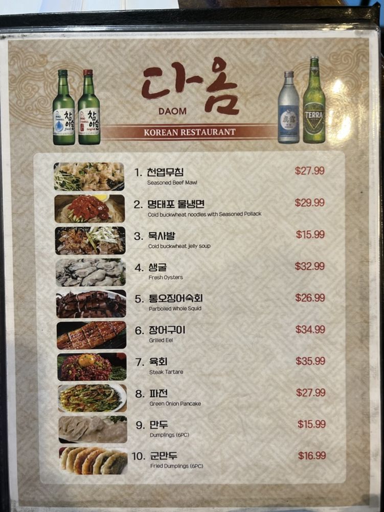Daom Korean Restaurant offers a unique dining experience in the hot pot and Korean cuisine category. Located in Buena Park, CA, the restaurant boasts a variety of lunch and dinner specials, including spicy beef soup, grilled eel, and spicy stir-fried pork belly. With a focus on authentic Korean flavors and attentive service, Daom is praised for its quality ingredients and excellent texture by satisfied customers. From the cozy ambiance to the diverse menu offerings, patrons enjoy the range of options available, such as dumplings, seafood dishes, and spicy braised meats. The attentive staff, quick service, and flavorful dishes create a memorable dining experience for those seeking traditional Korean fare in a casual yet classy setting. If you appreciate Korean cuisine, Daom Korean Restaurant is a must-visit spot for a delightful culinary journey.